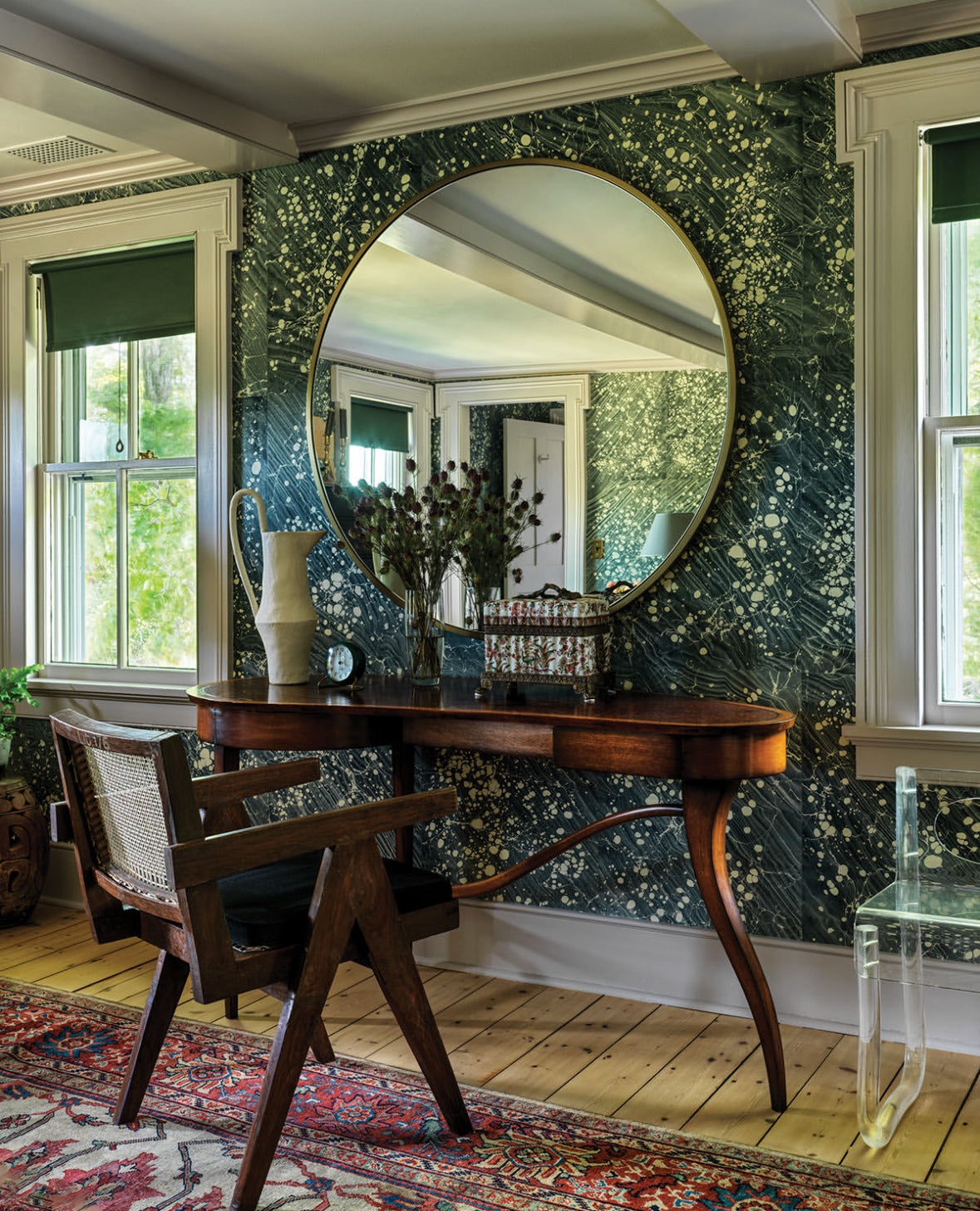 La gloriosa propiedad de Connecticut de Heide Hendricks y Rafe Churchill (de la firma de arquitectura y diseño de interiores Hendricks Churchill) ilustra cómo una casa de campo de finales del siglo XIX puede adaptarse para una vida elegante y cómoda en el siglo XXI. Rafe y Heide descubrieron su verdadero hogar en una granja de Nueva Inglaterra de finales del siglo XIX, después de una década de vivir en Brooklyn, Nueva York. La propiedad histórica, Ellsworth, es un escaparate de su estética compartida y su sensibilidad de diseñar para la vida real y no para la formalidad. En el centro se encuentra una casa de tradicionalismo minimalista con referencias a la tranquilidad Shaker, la practicidad de Arts & Crafts y la elegancia bohemia. Abundan los revestimientos de paredes caprichosos, los colores llamativos, una mezcla de muebles y antigüedades contemporáneas, emocionantes obras de arte y comodidad, lo que convierte una casa cotidiana del siglo XIX en un laboratorio creativo del XXI.